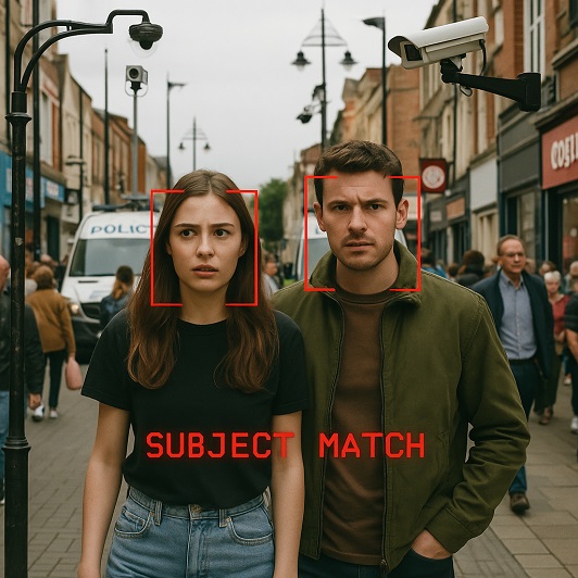 2. Live facial recognition. These systems scan faces in real time as people pass a camera. The software compares each face to a watchlist of individuals wanted for specific offences or subject to court conditions. When a possible match arises, officers decide whether to stop the person. Deployments are usually short, targeted and focused on high footfall areas.